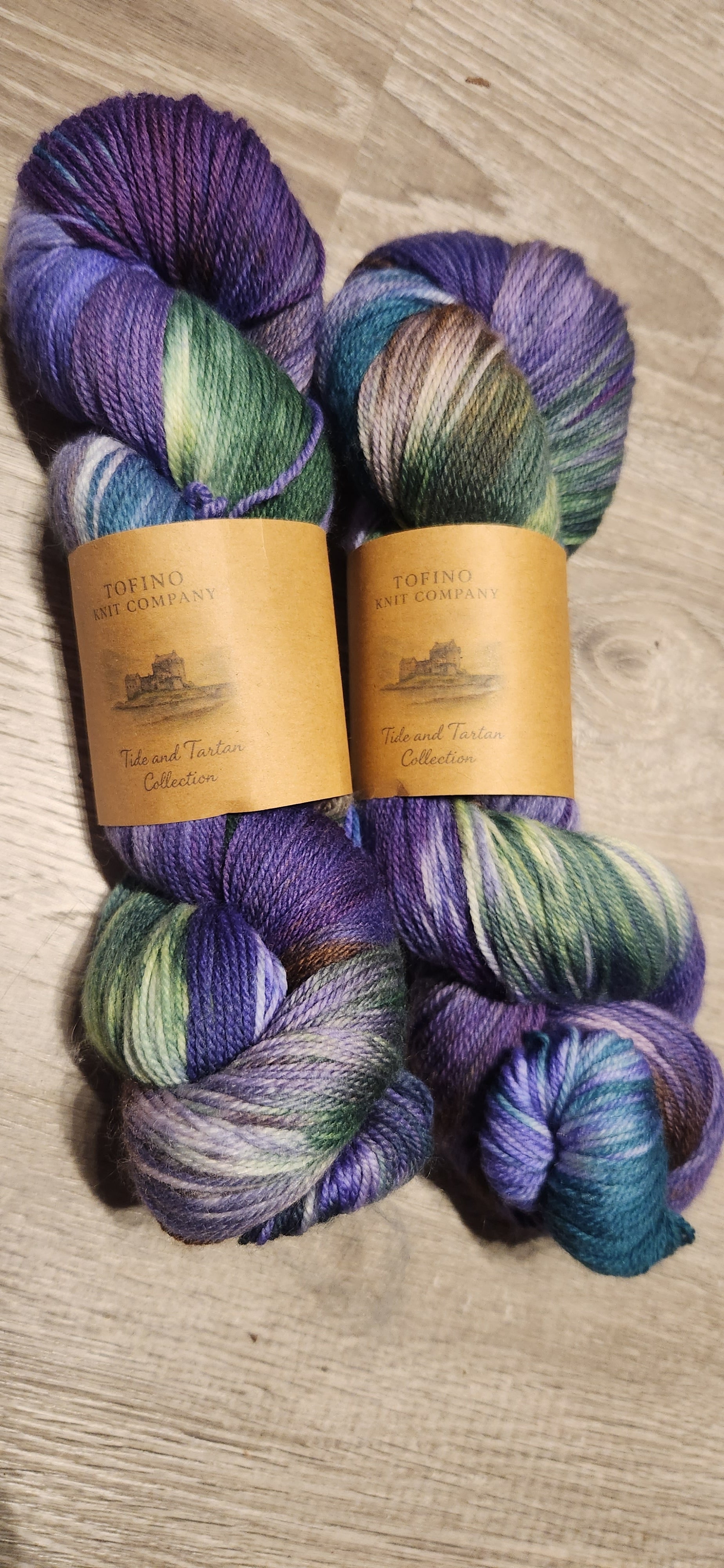 Variegated colours pulled from the Isle of Skye tartan... purples, browns, greens